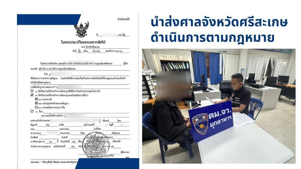 จับกุม นายวัน (นามสมมุติ) อายุ 27 ปี สัญชาติ ไทย ต.ดวนใหญ่ อ.วังหิน จ.ศรีสะเกษ ฐานความผิด “ร่วมกันจัดให้มีการเล่นหรือเข้าเล่นการพนันโดยไม่ได้รับอนุญาต, เข้าเล่นหรือเข้าพนันโดยขัดต่อกฎหมาย” เป็นบุคคลตามหมายจับของศาลจังหวัดศรีสะเกษ นำตัวผู้ต้องหาส่งพนักงานสอบสวน สภ.เมืองศรีสะเกษ เพื่อดำเนินคดีตามกฎหมายต่อไป และจับกุมคนต่างด้าวฯ สัญชาติลาว จำนวน 150 คน ข้อหาเป็นคนต่างด้าวเดินทางเข้ามาและอยู่ในราชอาณาจักรโดยไม่ได้รับอนุญาต และนำตัวดำเนินคดีตามกฎหมายต่อไป…