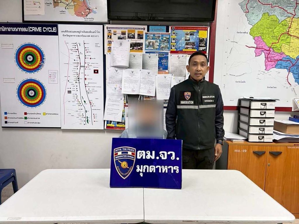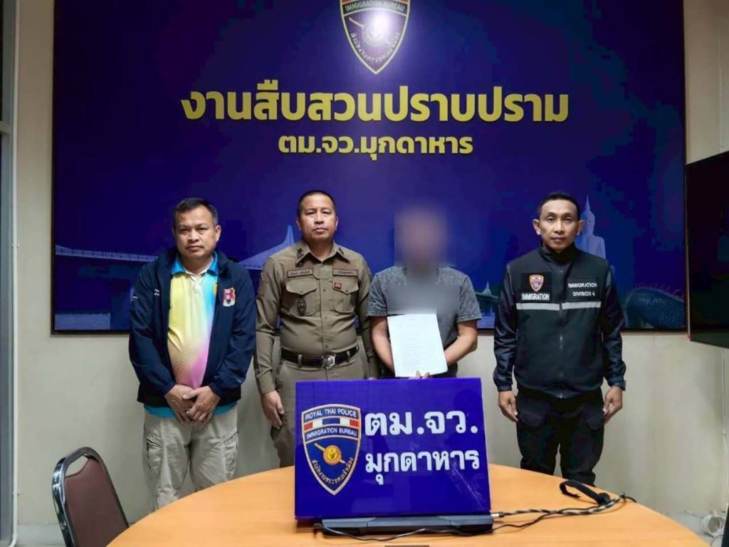 12 01 69 เวลาประมาณ 10.00 น. ภายใต้อำนวยการสั่งการของ พล.ต.ต.ไพรัช พุกเจริญ ผบก.ตม.4, พ.ต.อ. กฤษฎากรณ์ กลิ่นเกสร, พ.ต.อ.มณุวัฒน์ กอสนาน รอง ผบก.ตม.4 และ พ.ต.อ.ธนิสร แสงท่านั่ง ผกก.ตม.จว.มุกดาหาร, พ.ต.ท.จตุพล ยันต์นาวา รอง ผกก.ตม.จว.มุกดาหาร และ พ.ต.ต.หญิง กัญสุชญา จีรพุทธางกูร สว.ตม.จว.มุกดาหาร โดย ร.ต.อ.ยศณรินทร์ ดอกไม้ รอง สว.ตม.จว.มุกดาหาร พร้อม เจ้าหน้าที่ชุดสืบสวนฯ ตม.จว.มุกดาหาร