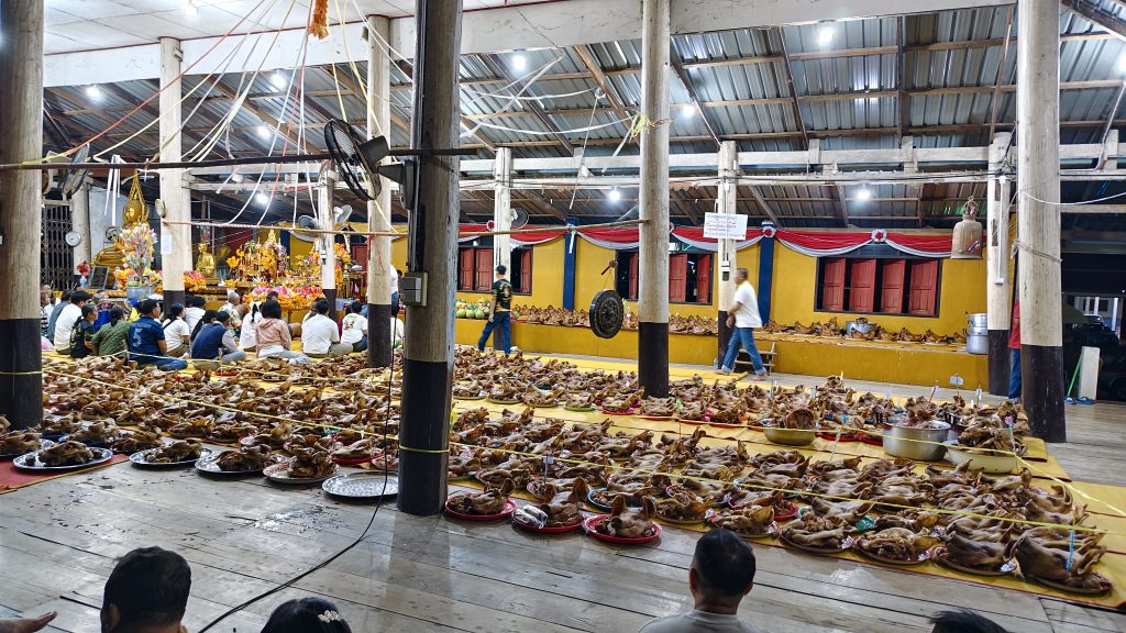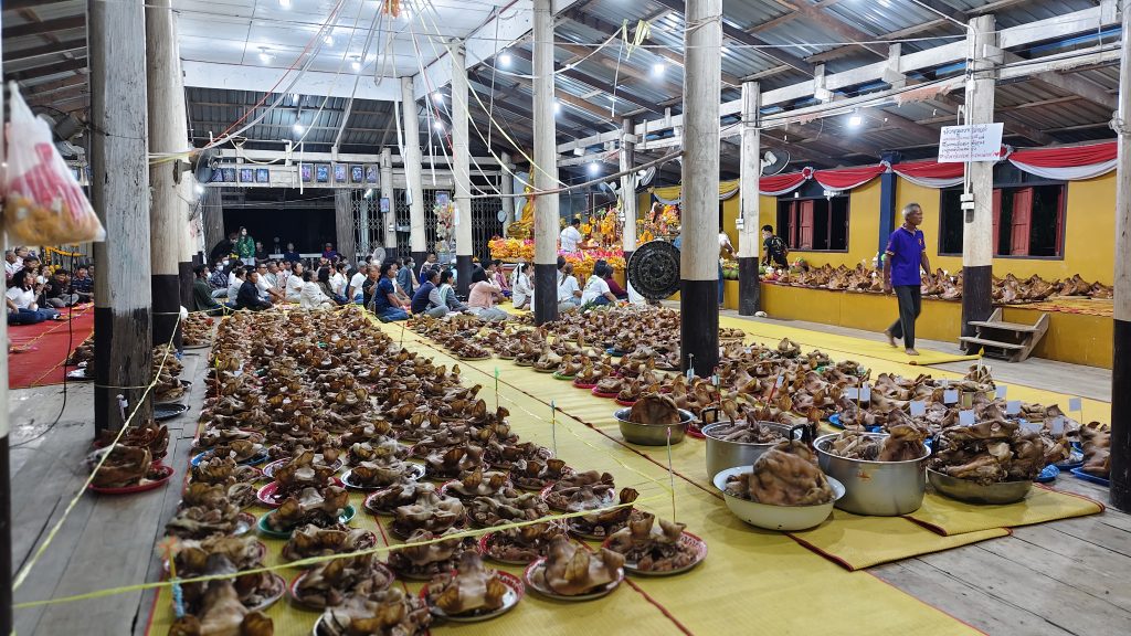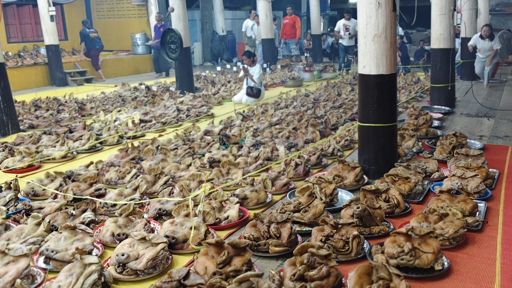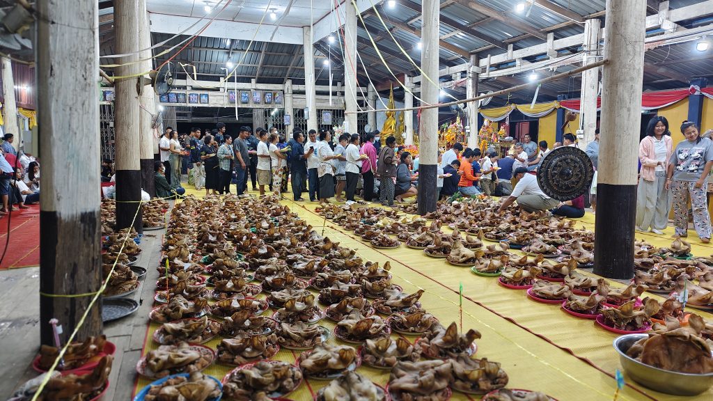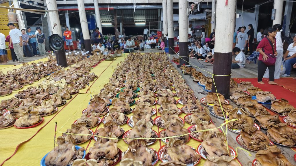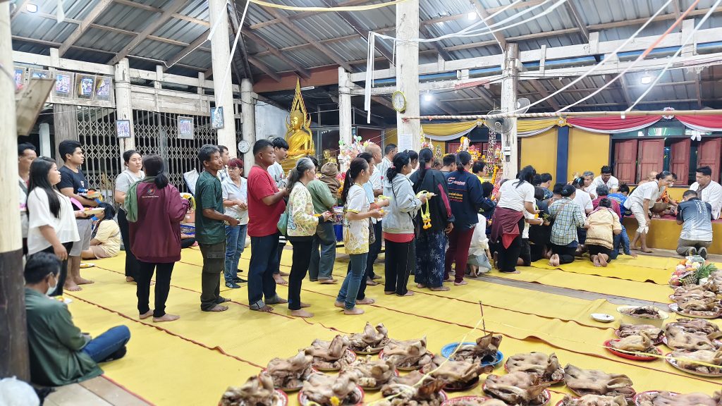 เมื่อเวลา 03.00 น. วันที่ 19 ก.พ.2569 ที่ศาลาวัดห้วยบง ม.5 บ้านห้วยบง ต.บ้านบึง อ.บ้านไร่ จ.อุทัยธานี ได้มีประชาชนหลายร้อยคนทั่วสารทิศ ได้นำหัวหมูไม่ต่ำกว่า 500 หัว มาวางบนศาลาวัดจนศาลาแน่น เพื่อแก้บนหลวงพ่อปลั่ง ฉวีวัณโณ อดีตเจ้าอาวาสวัดห้วยบง