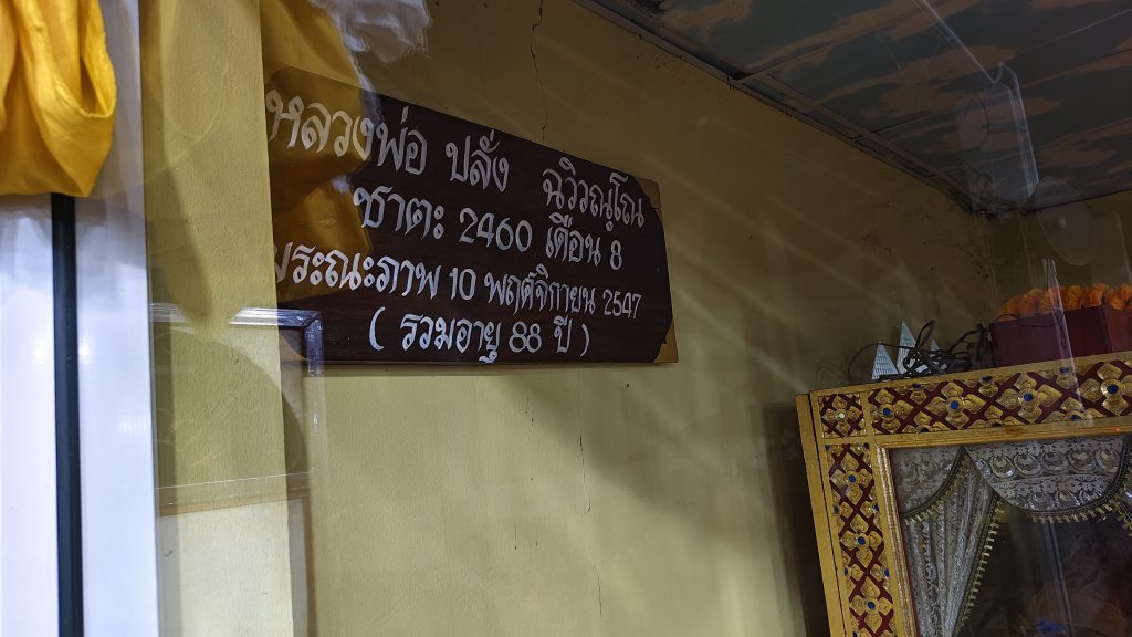 ซึ่งทางวัดได้นำร่างที่ไม่เน่าเปื่อยของหลวงพ่อบรรจุอยู่ภายในโลงแก้ว ตั้งไว้บนศาลา เพื่อให้ประชาชนมากราบไหว้ เพื่อบนบานศาลกล่าว หลังจากประสบความสำเร็จในด้านธุรกิจส่วนตัว ต่าง ๆ เจ็บไข้ได้ป่วย ให้หาย