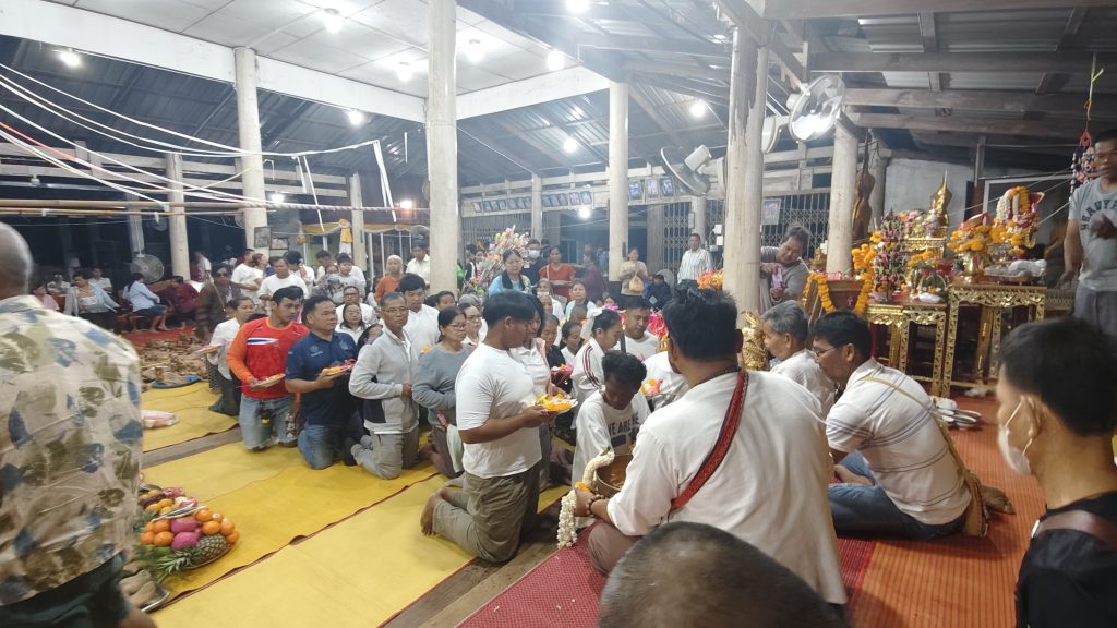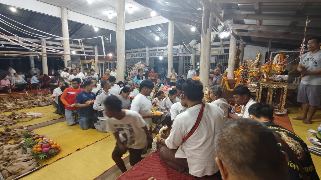 หลังจากแก้บนแล้วก็จัดพิธีไหว้ครู พร้อมกับทำบุญเลี้ยงพระเช้า ในส่วนกลางวันและกลางคืนที่ผ่านมาได้มีดนตรีมาแก้บนโดยประชาชนบางรายได้เดินมานอนค้างคืนกันภายในวัดเพื่อรอประกอบพิธี