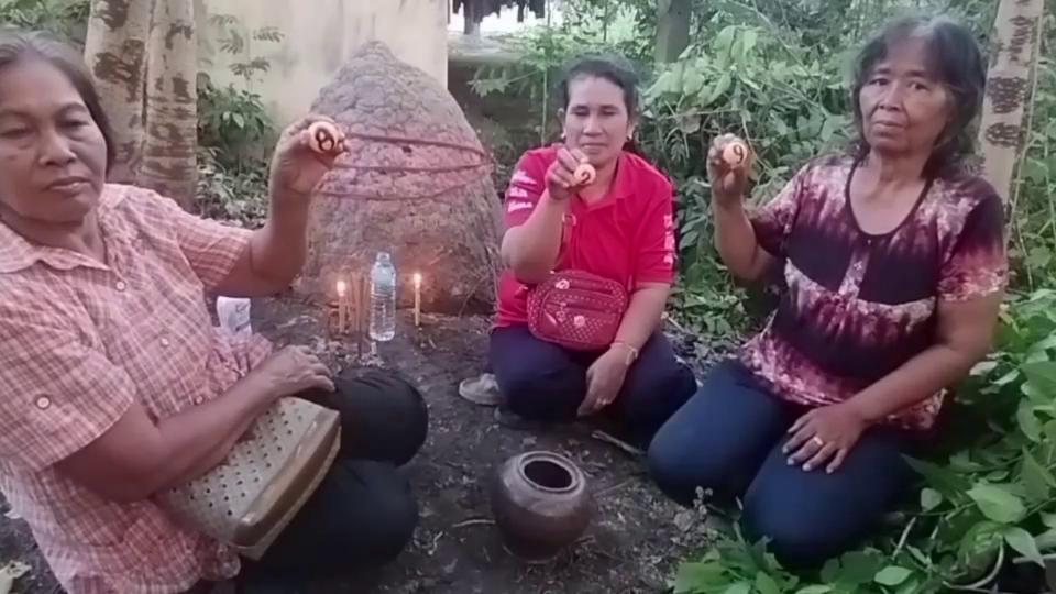 ขณะเดียวกัน หลังจากที่กราบไหว้แล้วเสร็จ ได้พากันจุดธูปจีนเสี่ยงดวงได้เลข 667 ไม่พอชาวบ้านได้พากันลุ้นจับเลขปิงปอง ได้เลข 829 พร้อมกับนำแป้งมาทาถู กับจอมปลวก บางคนเห็นเป็นเลข 62 บางคนเห็น 68 ชาวบ้านจะนำเลขที่ได้นั้นจะเสี่ยงดวงในวันหวยออก หากถูกรางวัลจะนำสิ่งของและผ้า 3 สีมากราบไหว้